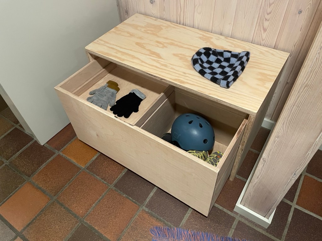 Rest/genbrug af krydsfiner til bænk med opbevaring