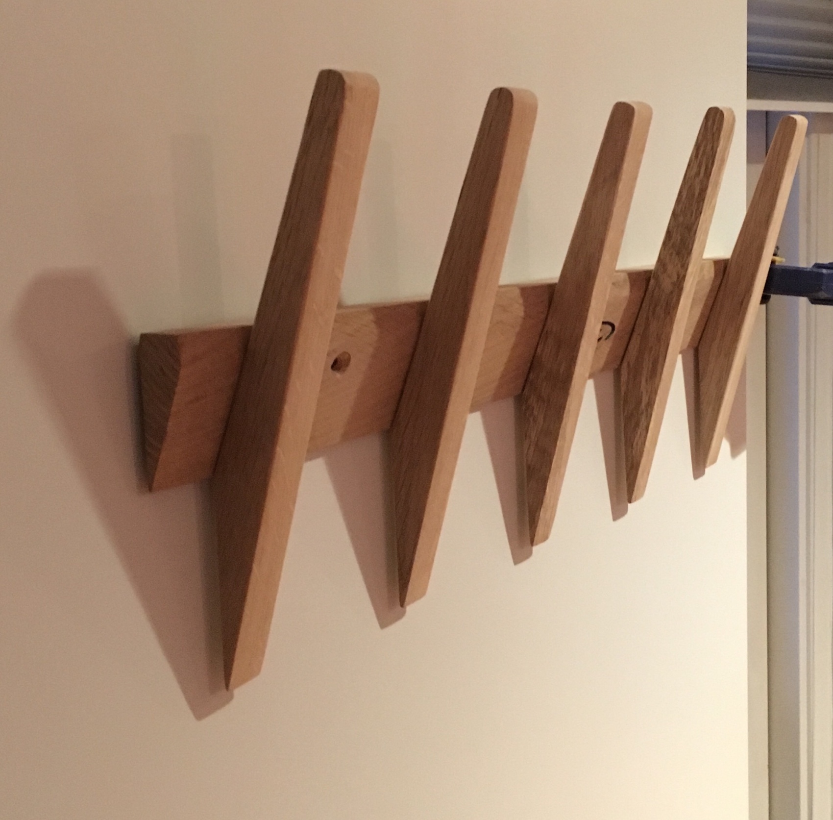 Garderobehylde – egetræGarderobehylde med bøjlestang Vægur i massivt egetræKnagerække i røget egKnagerække i ubehandlet eg